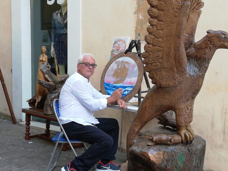 Questa tecnica artistica mediante la quale vengono realizzati ornamenti in incavo o in rilievo su superfici di legno si distingue dalla scultura per il fine eminentemente decorativo e per la funzione che assume nei confronti del manufatto o dell’opera cui si applica. Le opere di Piero Mariani sono particolari perchè vengono utilizzate vecchie radici che ritornano attraverso la sua arte a rivivere e ad essere considerate “lavori artistici di altà rifinitura”.